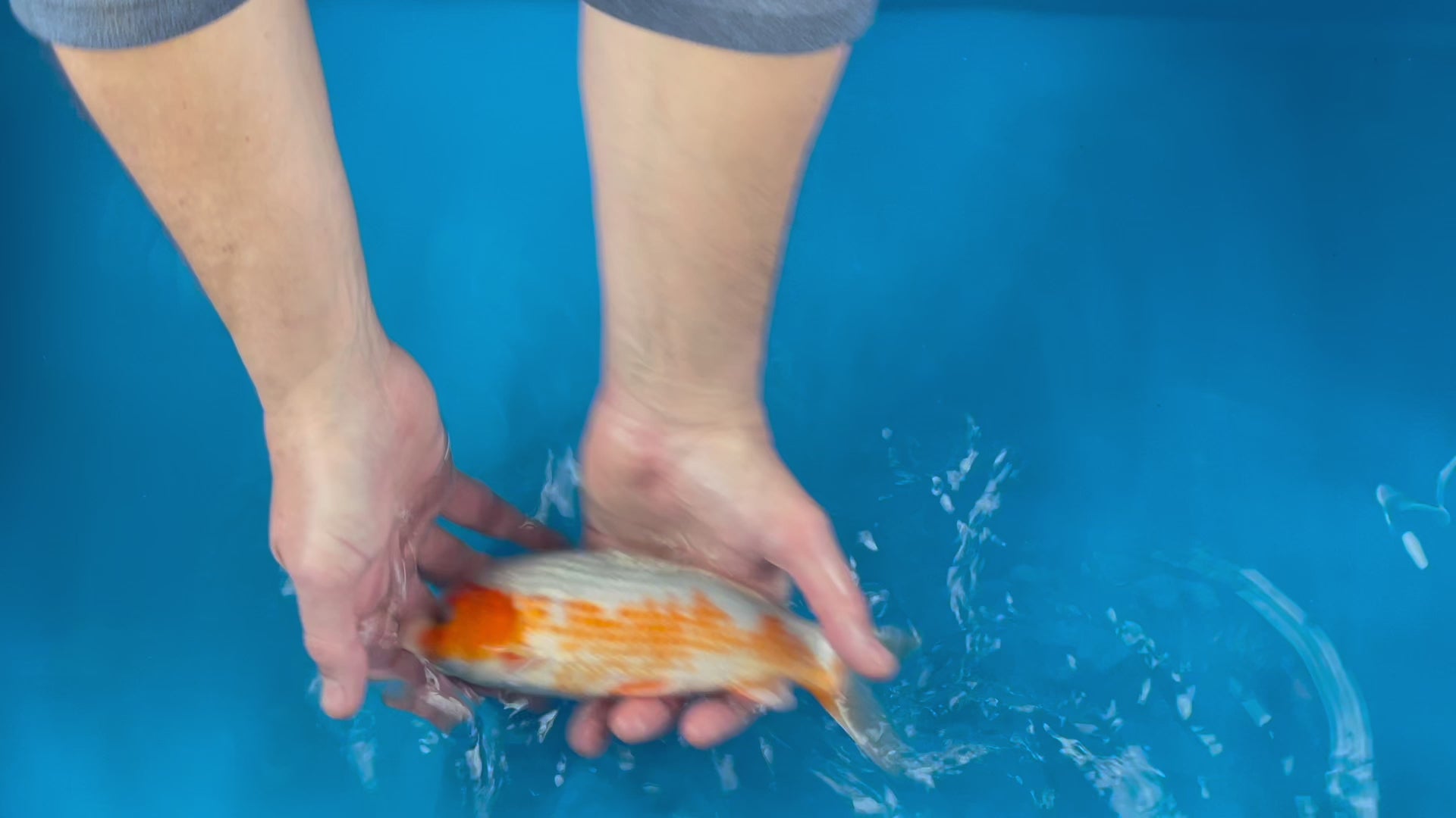 The Otsuka Monubee bloodline for Asagi is one of the top two in the world with one of the most distinctive characteristics. That is the big, round face known as Otafuku and combined with that amazing beni quality. This particular example will develop a informal beni pattern which tends to look very impressive.