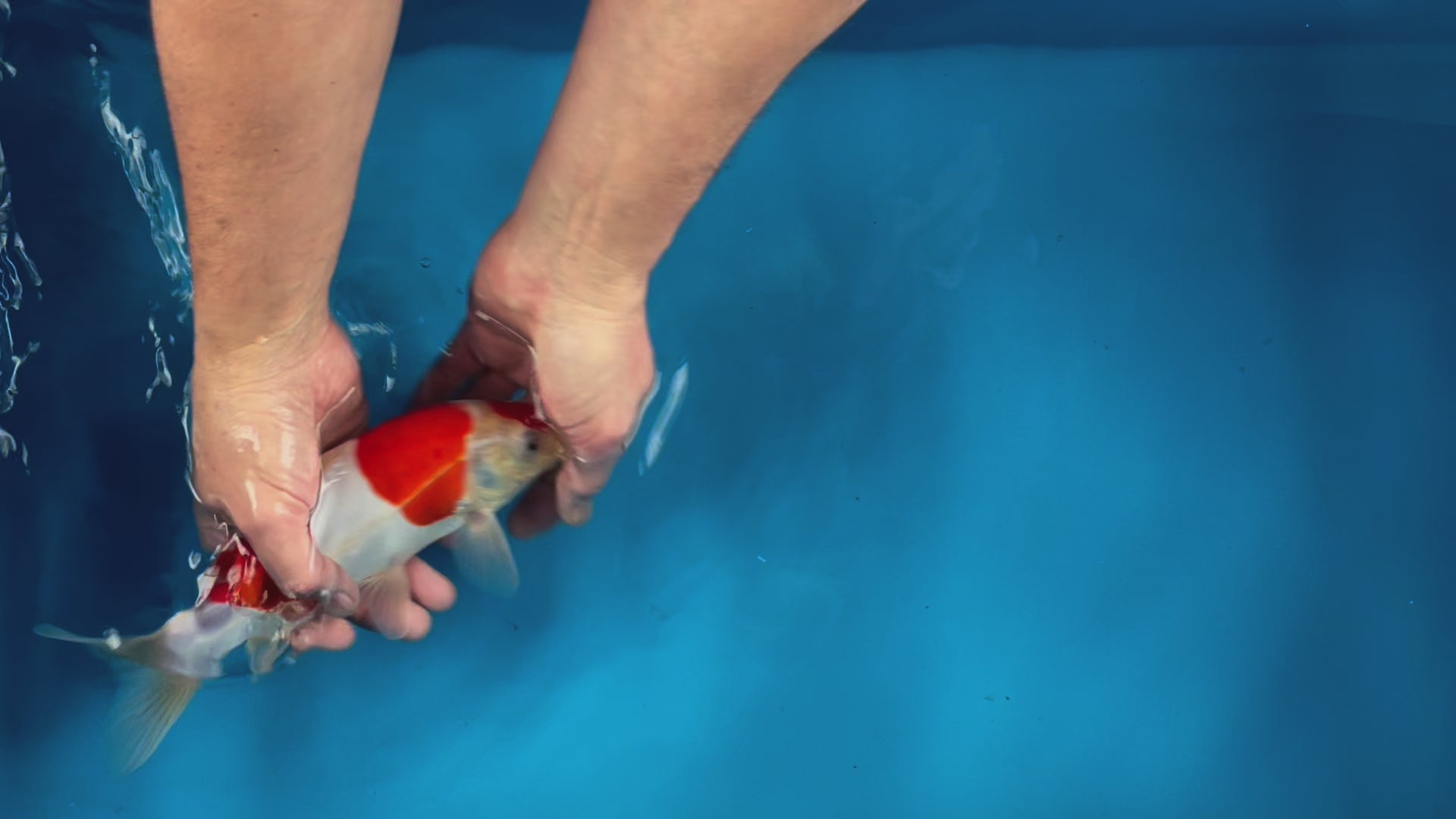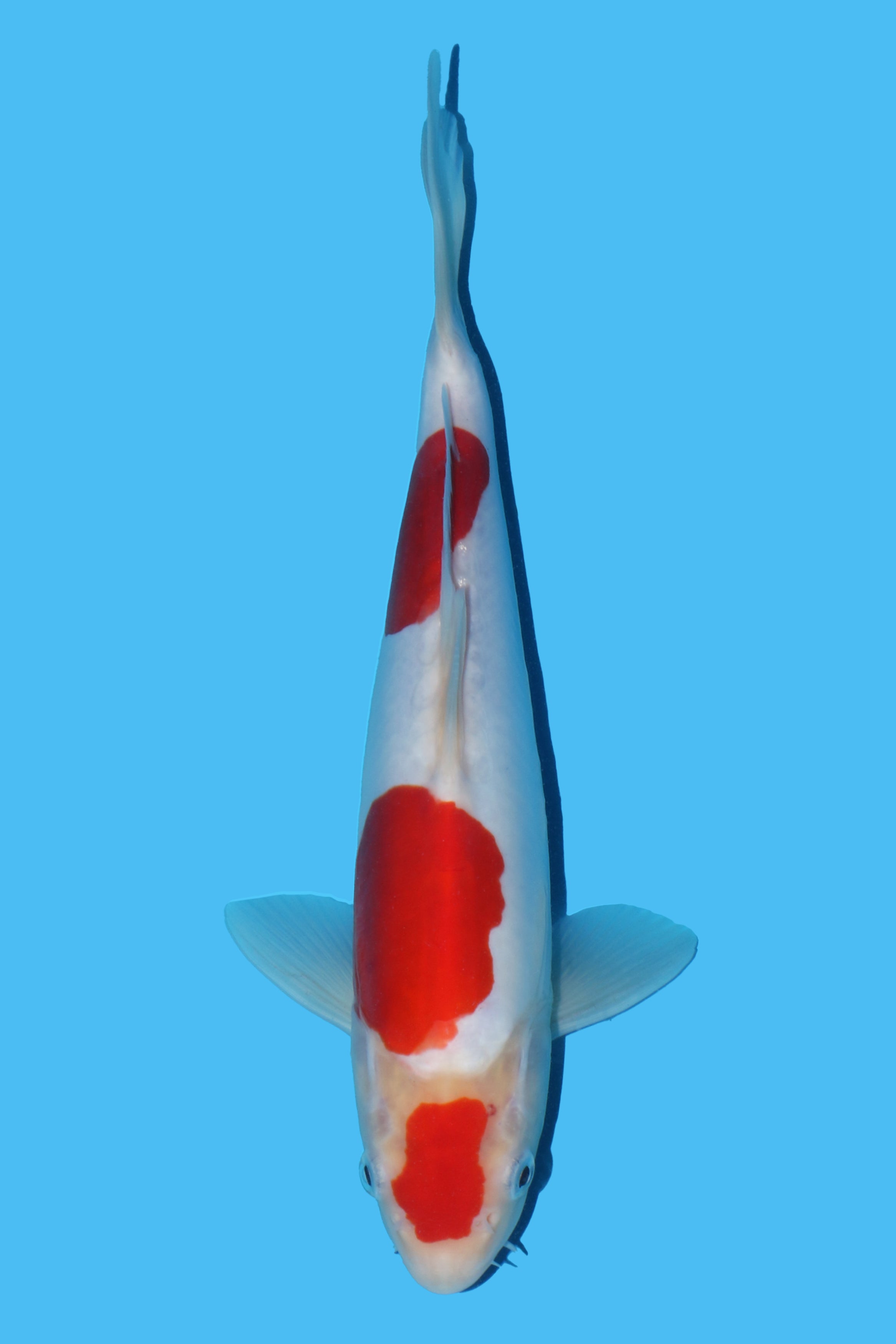 Maruhide is now one of the few established bloodlines in Niigata for Doitsu Gosanke. Having started part-time while working at Isa Koi Farm he has progressed into a fantastic independent breeder. This koi has good beni and shiroji packaged with a great sandan maruten pattern.