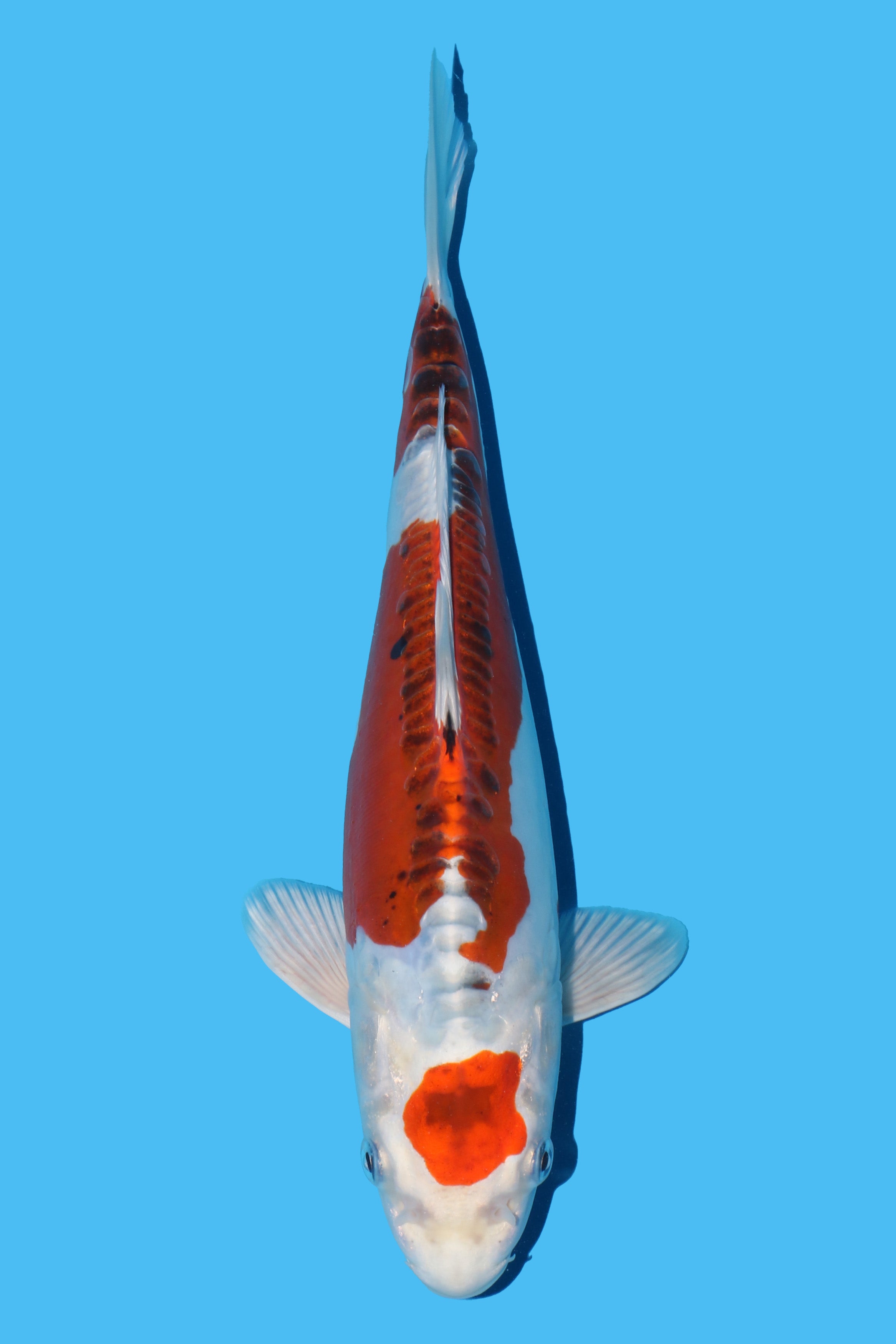 The shine on the head coupled with that Maruten head pattern creating a striking visual impact. The koi has a nice body line, strong head and well balanced pattern. The clean head and fins are another nice touch.