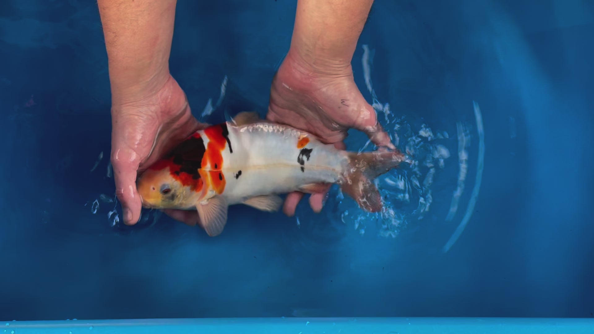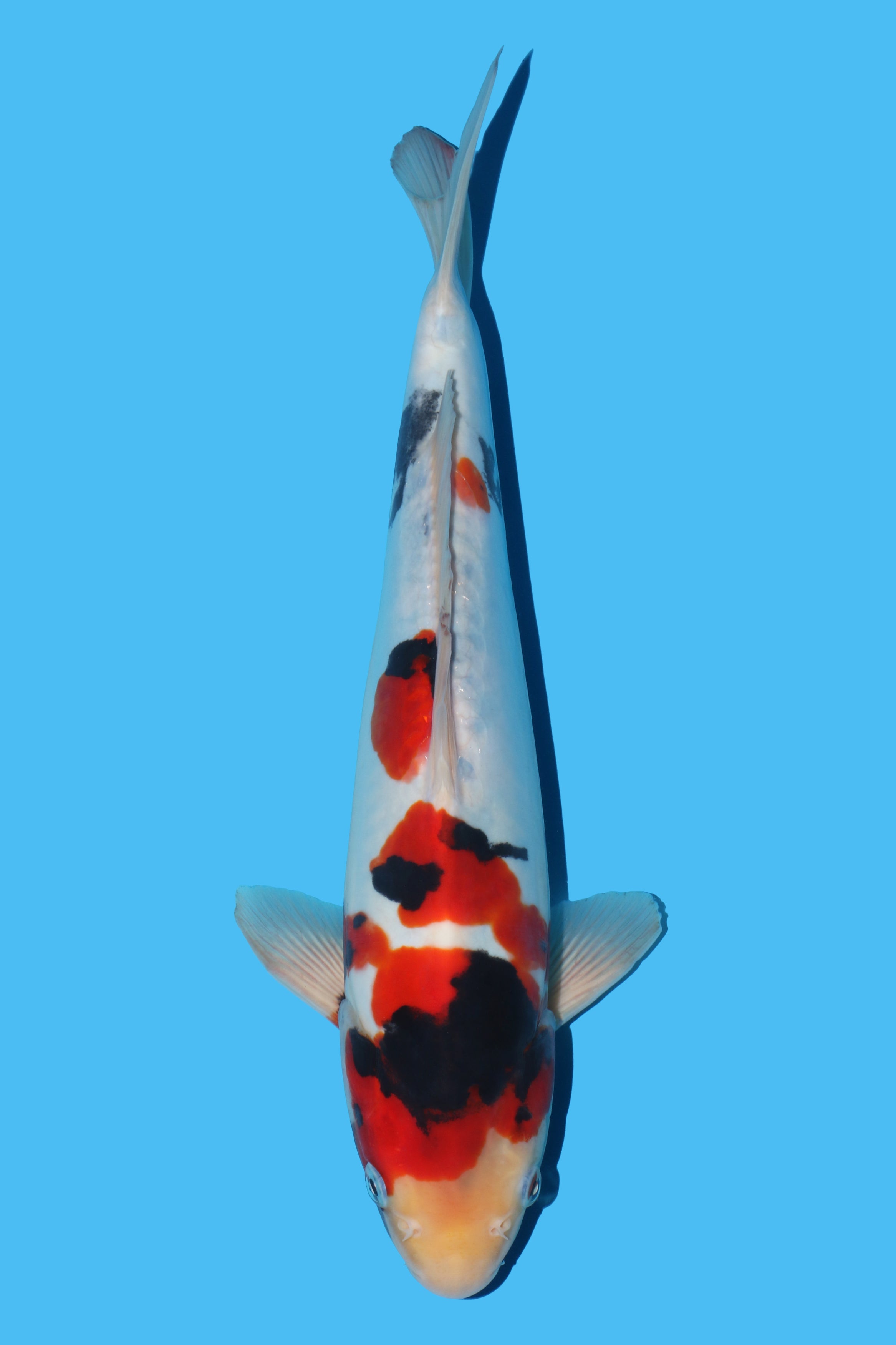 Overall body set up on this koi is a big positive, beni and sumi quality on this Doitsu Showa will continue to strengthen. Skin quality is very good.