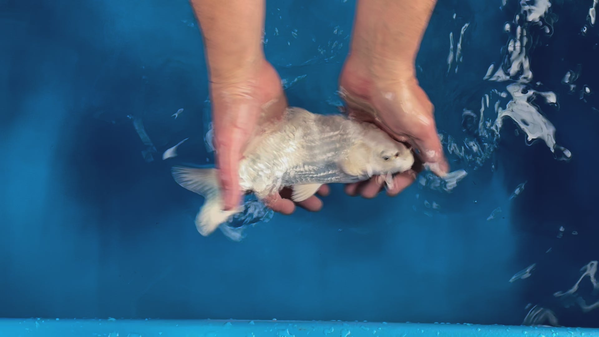 A strong shine which is important for any metallic Koi. The Matsubamon can be seen developing and will continue to do so with age.