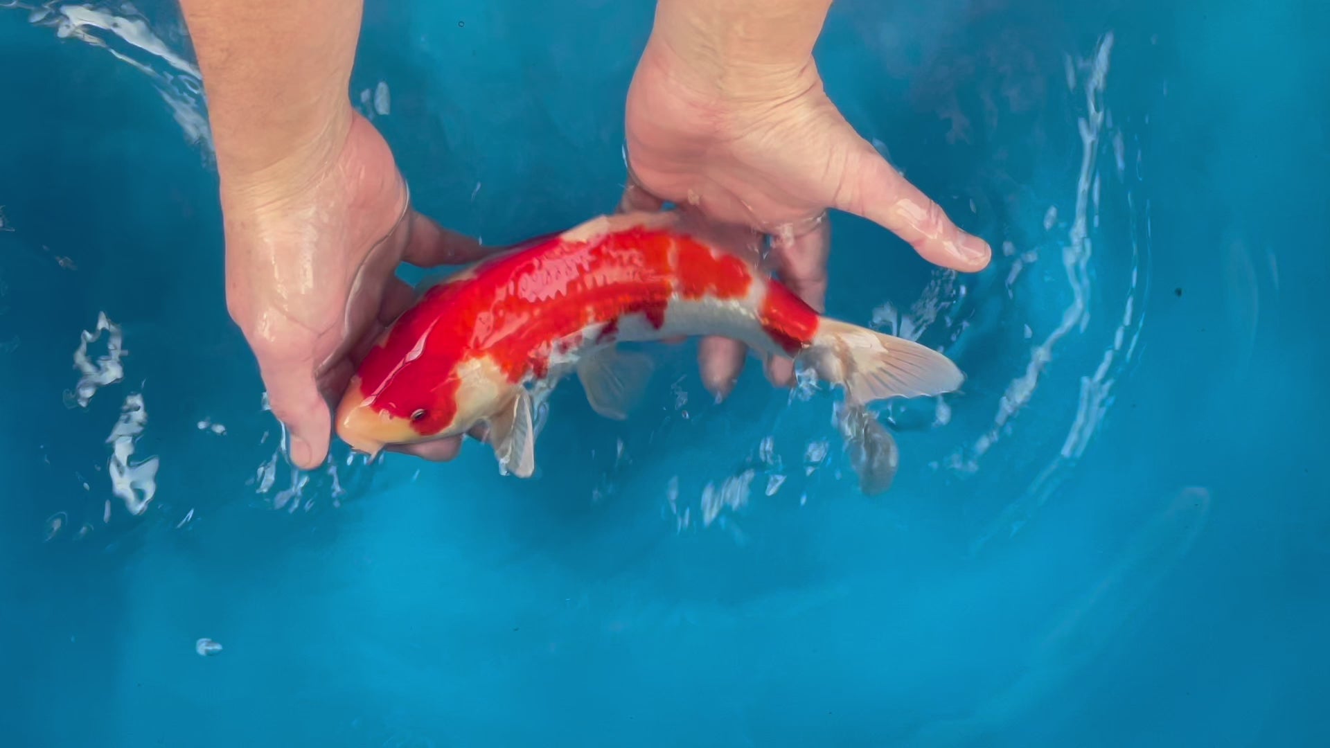 The most highly regarded Ginrin Kohaku bloodline in Japan at this time and you can see why. You take one of the best Kohaku lines and add amazing Ginrin, it could only end one way. One thing they deliver on is body which is harder to achieve in Ginrin. The skin quality is there for all to see.
