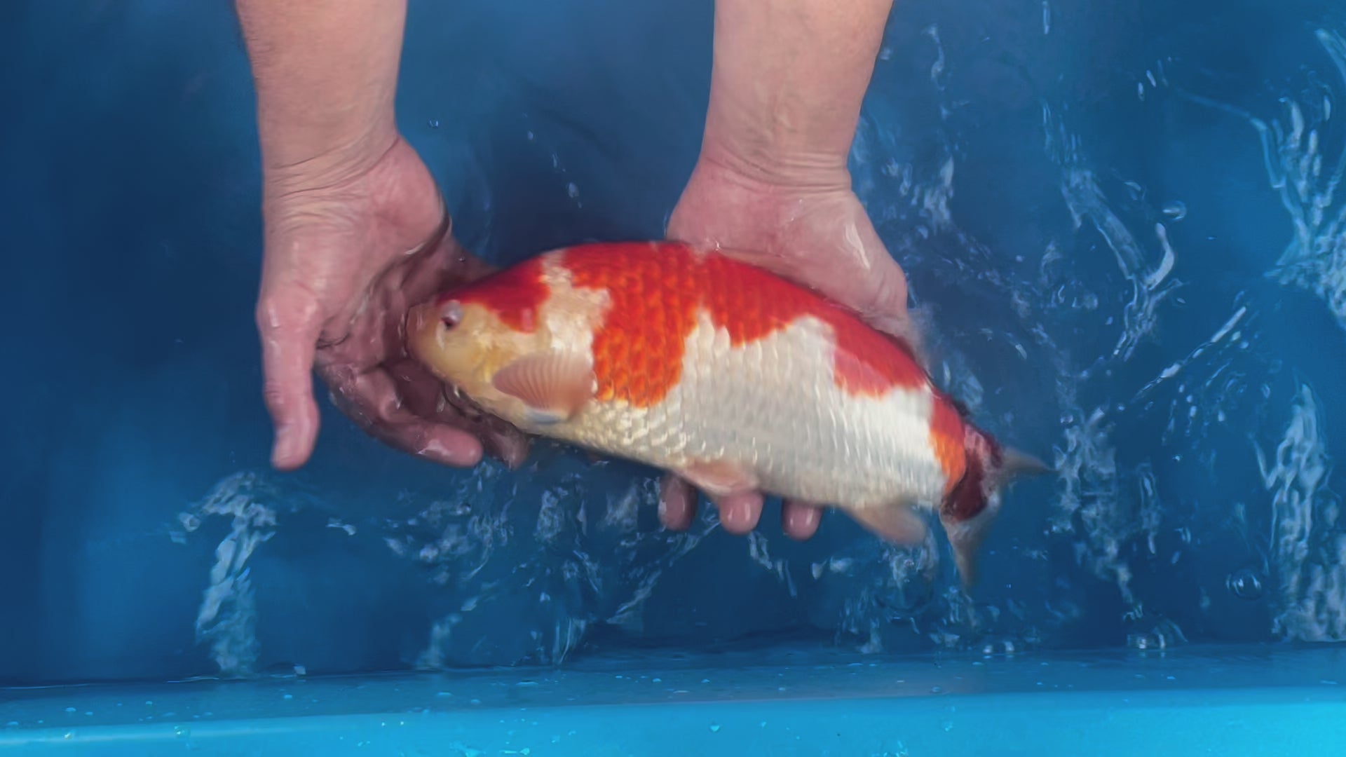 The most highly regarded Ginrin Kohaku bloodline in Japan at this time and you can see why. You take one of the best Kohaku lines and add amazing Ginrin, it could only end one way. This one is an absolute slab of a fish, just look at the head and backbone!