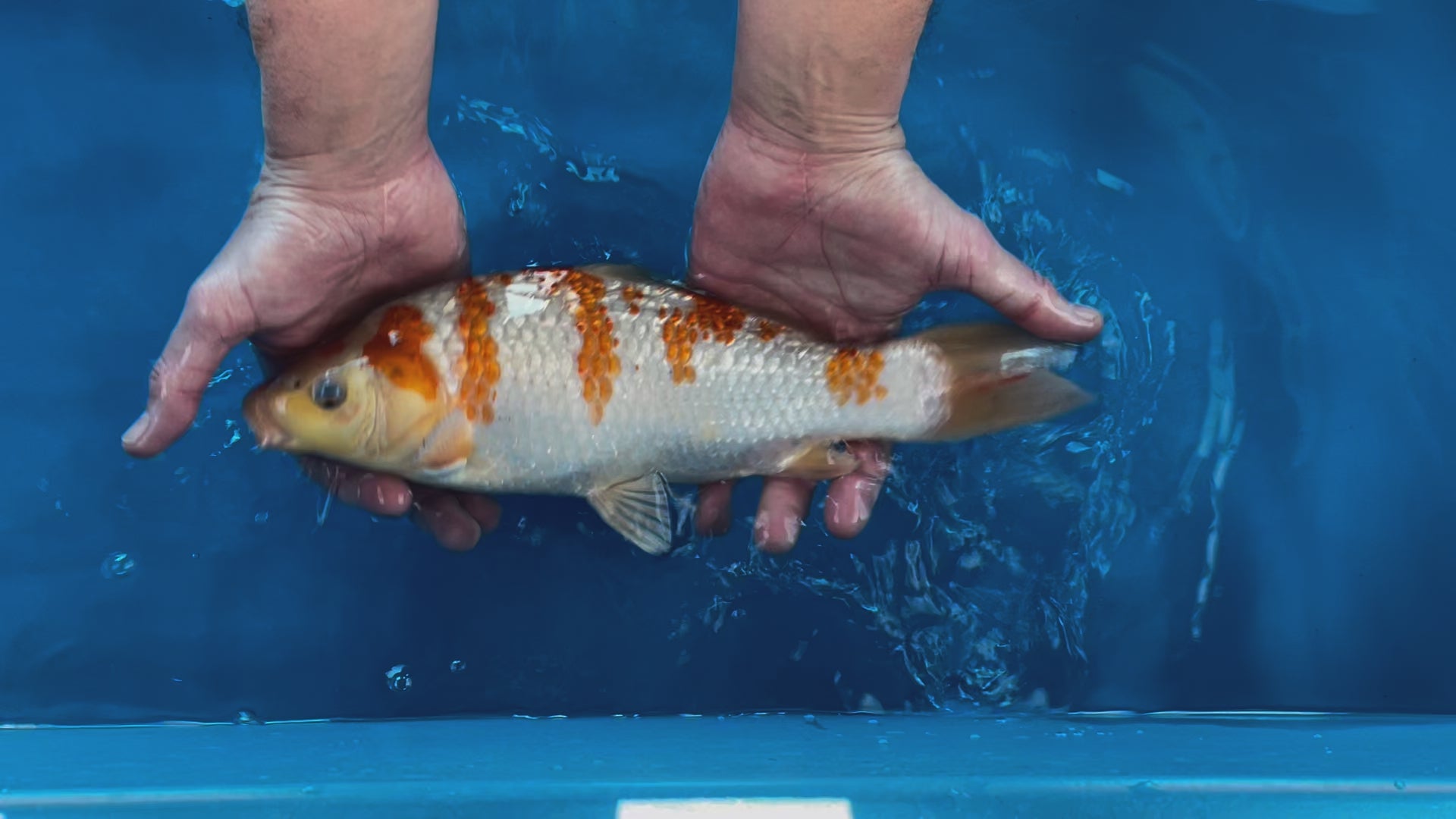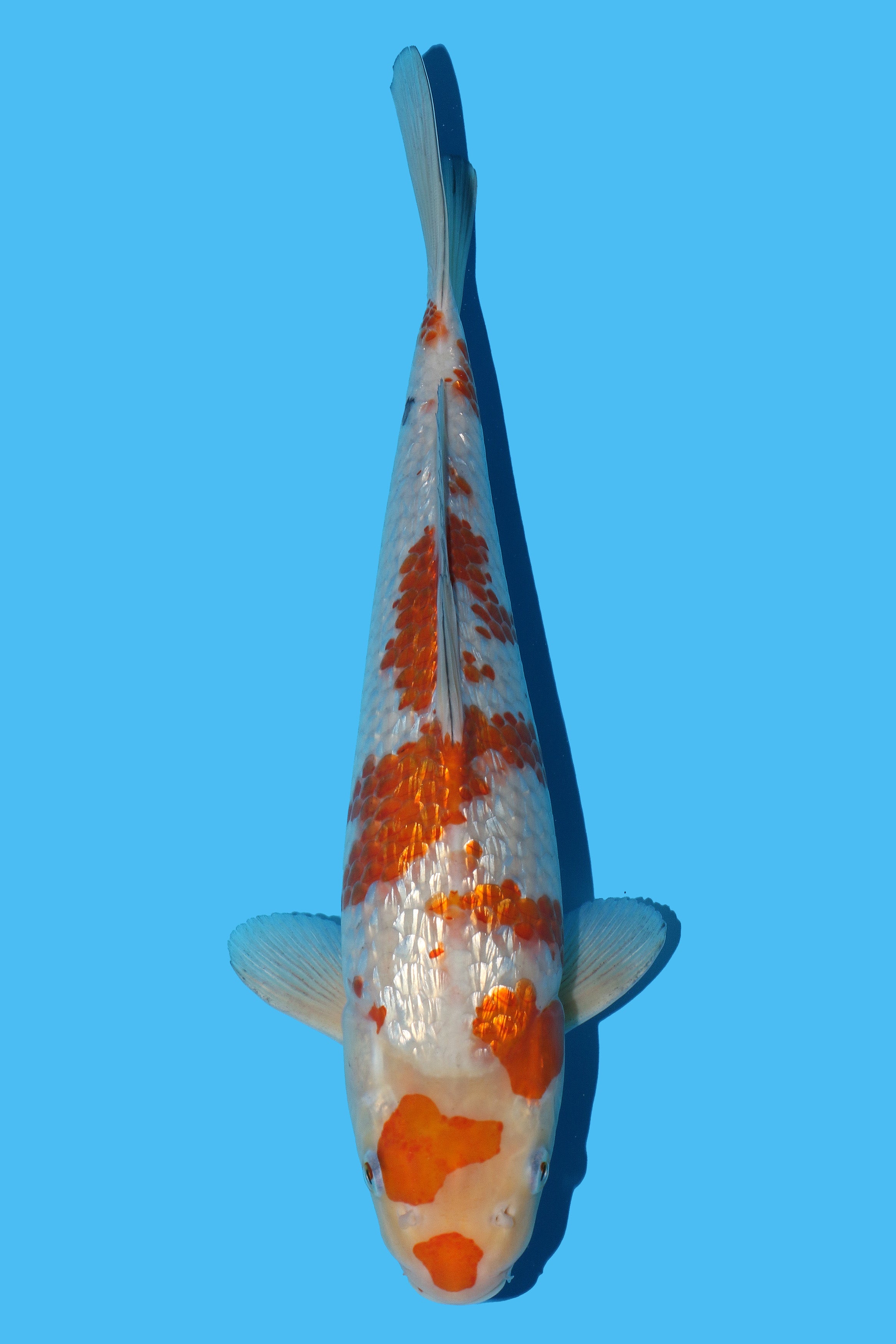 Koda Ginrin Ochiba are amongst the best out there for colour and stability. The bloodline was based on a 94cm female, koi show winning Ochiba. This one has an appealing flowery patter but the one of the best characteristics is the head shape. It has a big head and mouth which will indicate good growth and much more body volume to come.
