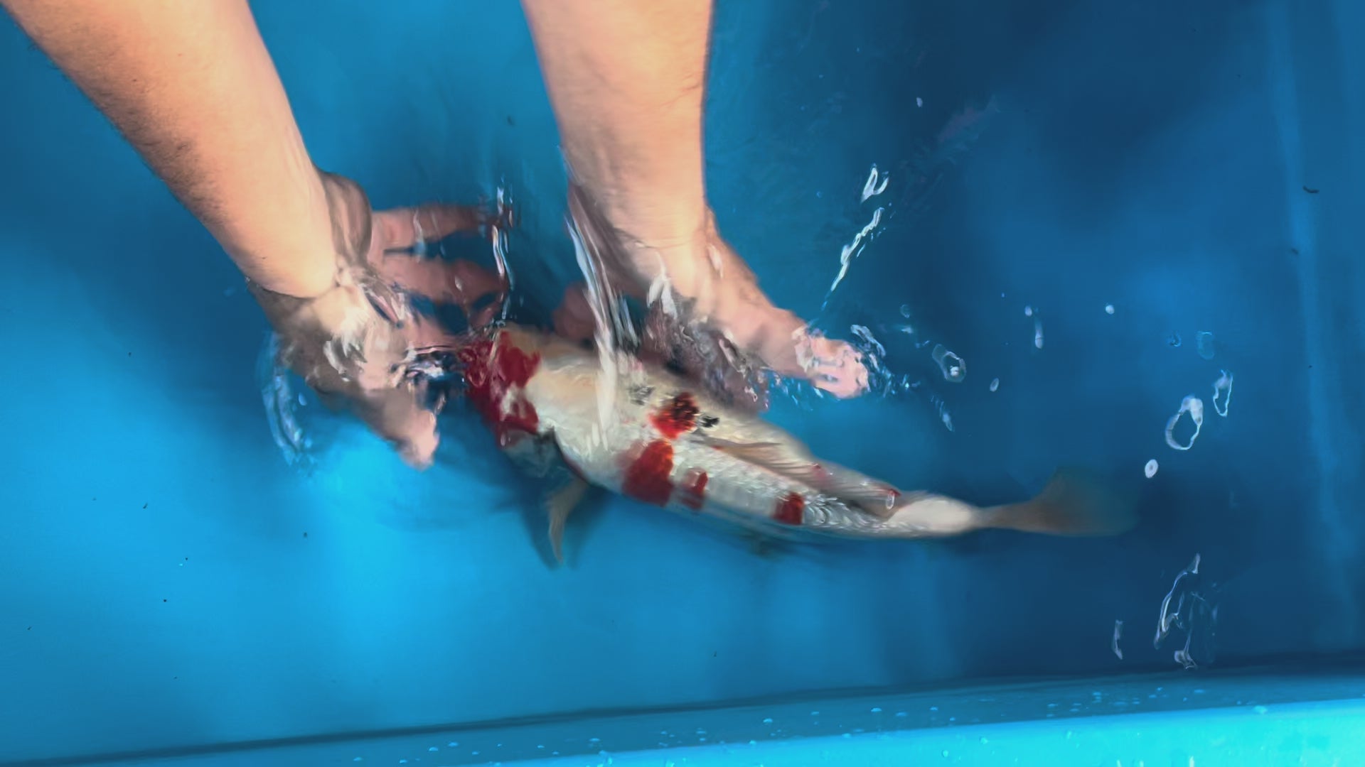 If you have the eye and patience there is a superb Ginrin Showa in the making here. It has the technical qualities, it's just waiting for sumi. How the beni pattern is distributed over the could lead to a stunning balance in later life.