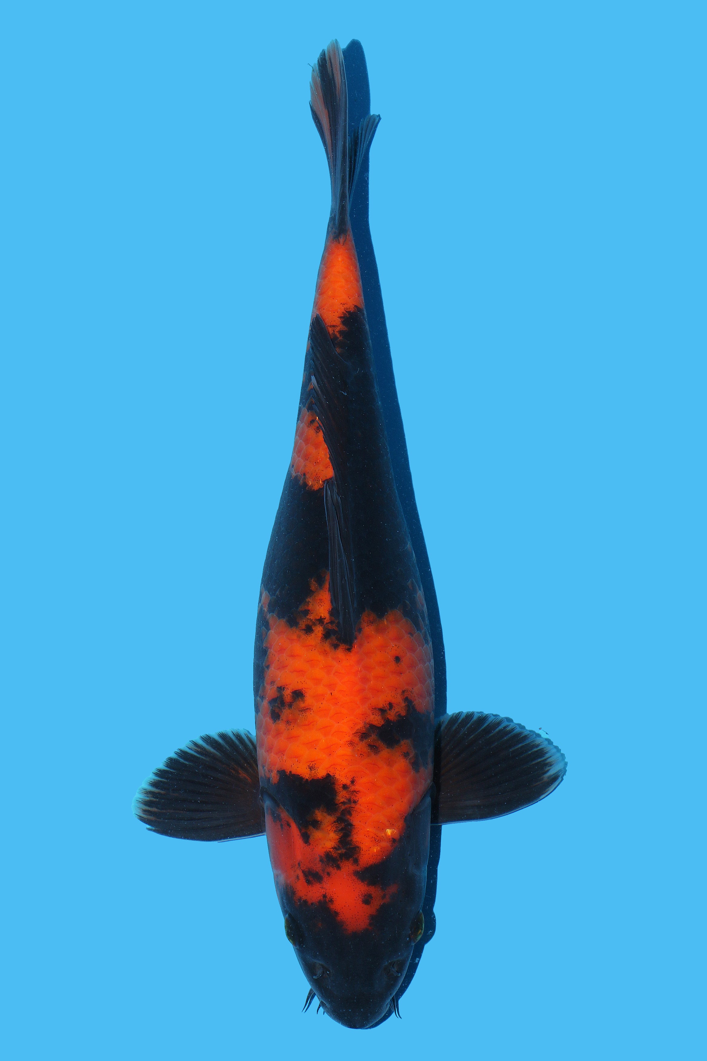 Shinoda is the leading producer of Hi Utsuri in Japan and therefore the world. His bloodlines is renowned for producing jumbo examples with serious quality. This is a very clean example with nice depth of colour and a strong pattern.