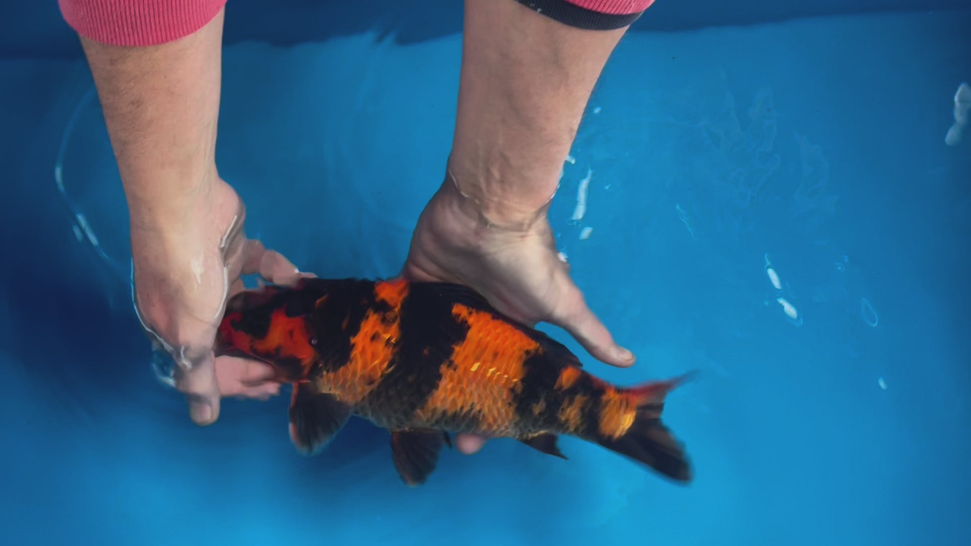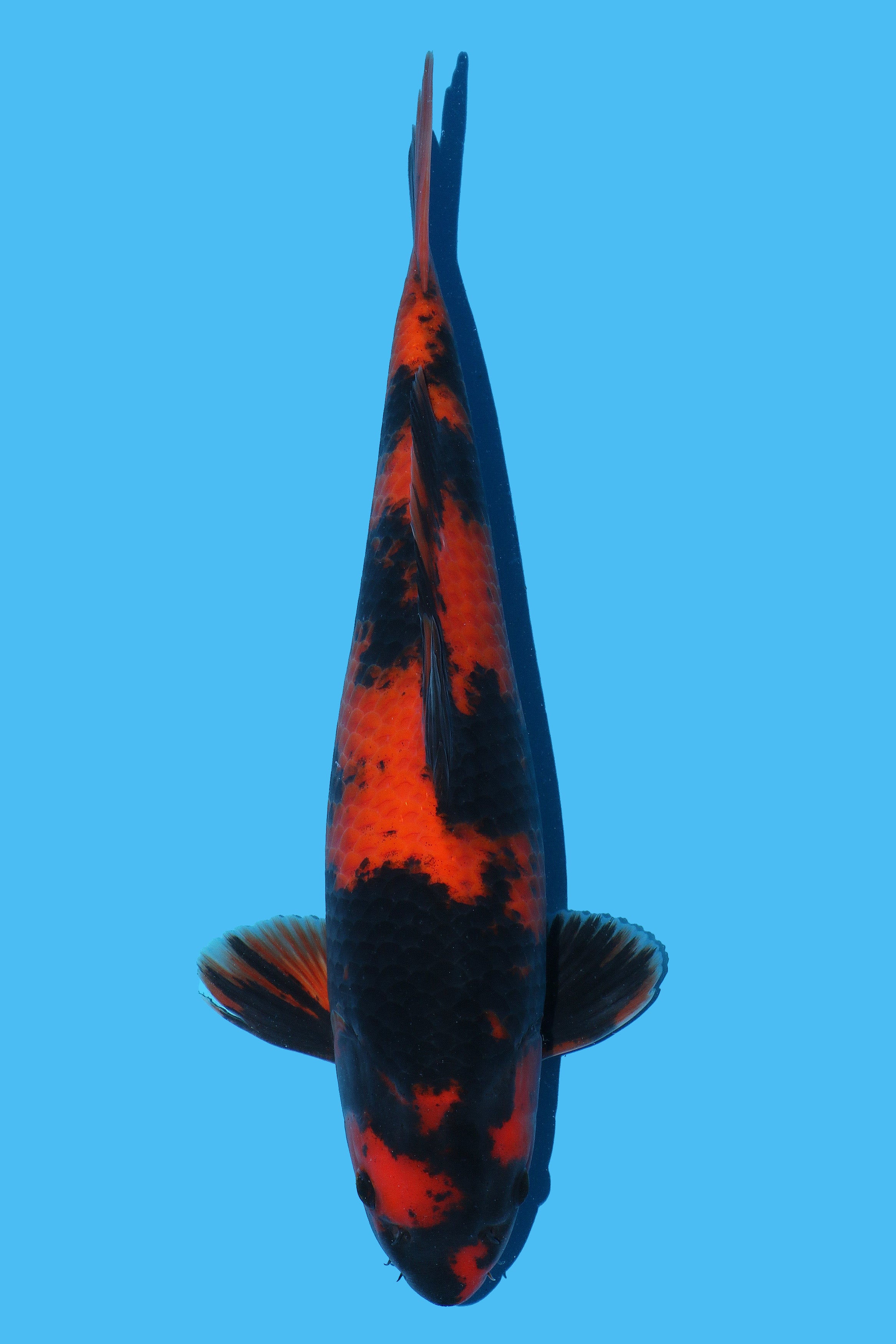 Shinoda is the leading producer of Hi Utsuri in Japan and therefore the world. His bloodlines is renowned for producing jumbo examples with serious quality. This example is fantastic, reduced because of the split fin, this will recover but it will take time. A nice long body line with power in the right places indicated good growth potential. The pattern, especially the head is superb!