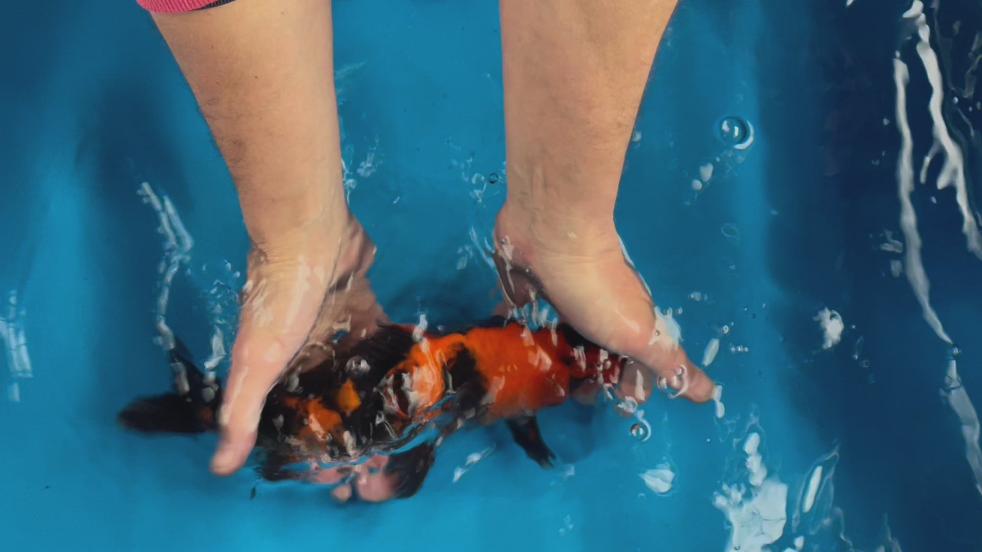 Shinoda is the leading producer of Hi Utsuri in Japan and therefore the world. His bloodlines is renowned for producing jumbo examples with serious quality. This one has very clean beni and a strong pattern. Unfortunately the body line does let it down a little bit and therefore it commands a lower price. There's still good growth to come in future in the right conditions.