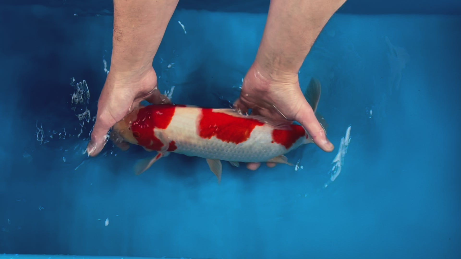 The depth and hue of the beni of this Kohaku can only be seen from a handful of breeders, Maruyama being one of them. It has sharp kiwa, consistent sashi and a well balanced pattern. Looking at the size of the head there is a lot more to come from the body as well.