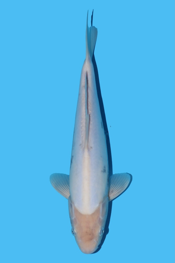 This is an offspring from his incredible Kikokuryu x Karashigoi bloodline. The body line and both structure and untypical of this variety. The thought of what this Koi can become is so exciting. The body form is superb, shiroji crisp and early signs of sumi forming. Where sumi is forming it looks like there could be a very special pattern.