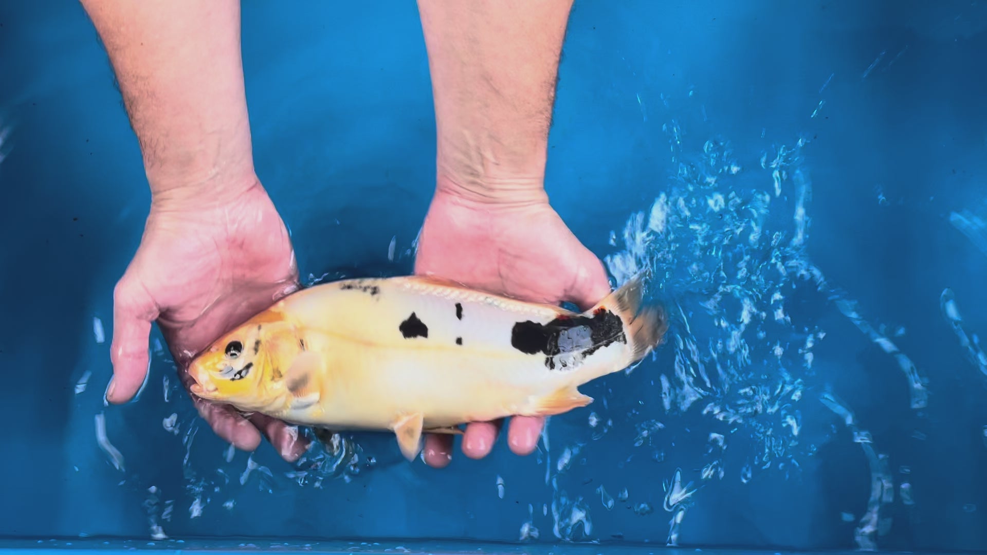 This is an offspring from his incredible Kikokuryu x Karashigoi bloodline. The body line and bone structure are untypical of this variety. This example as well as having the body attributes has picked up a small metallic shine in places coming from the Kikokuryu parent. A really exciting prospect!