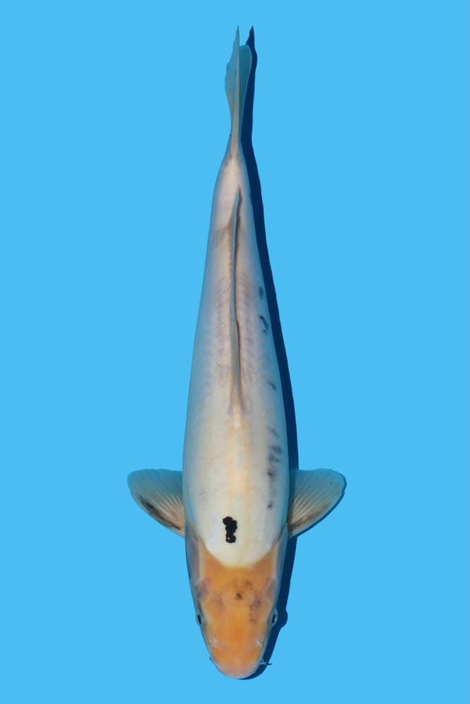 This is an offspring from his incredible Kikokuryu x Karashigoi bloodline. The body line and both structure and untypical of this variety. When it comes to the pattern this one will be an exciting journey, the signs of early sumi progress are clear. The size of the head and mouth is crazy. Except great growth, high quality sumi and the head the whiten considerably.